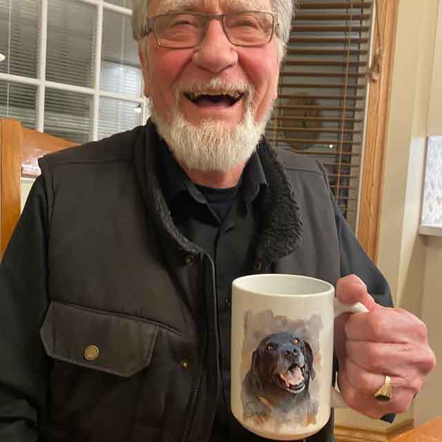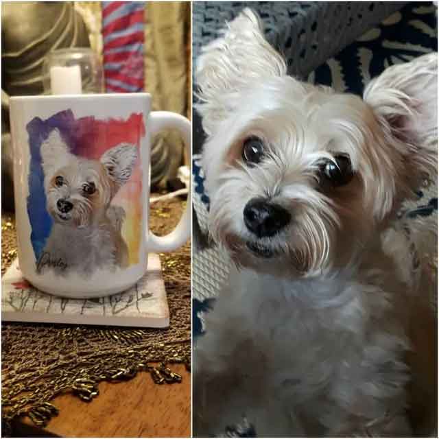 I love my new mug! I used to have my coffee every day with my pup and when I lost him on Valentines Day I thought it would be comforting to have a mug with his photo on it so he is still with me each morning. Edward captured my boy perfectly! He did a wonderful job! I am so pleased with it I ordered 2 more for my sister when she lost her cat and they are just as awesome! thank you, Edward!
